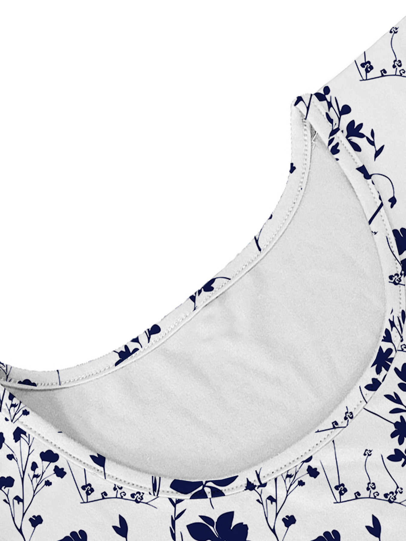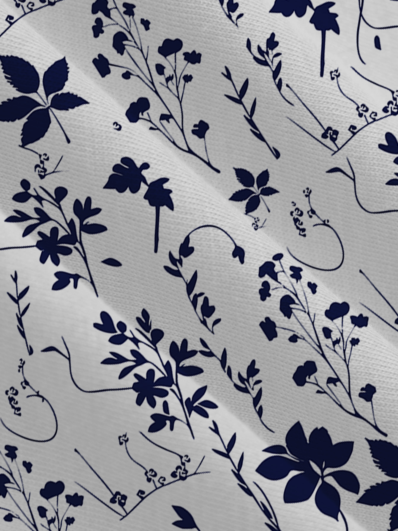 Com estampa de folhagens em azul sobre fundo branco, ele traz um ar leve e clean. O tecido macio e a modelagem soltinha garantem que você se sinta livre o dia todo."